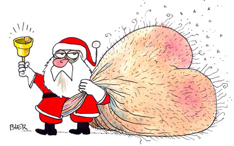 Nosso Papai Noel está mais magro, mas acomodará à todos sobre um enorme saco cheio.